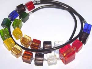 Materiały: kamień naturalny- lawa wulkaniczna, koral, opal, srebro, szkło wenecki, rzemień