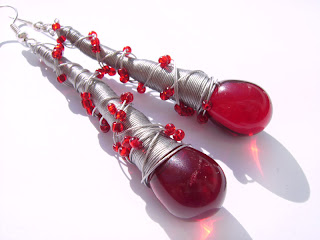 Materiały: koraliki szklane jablonex, elementy posrebrzane, srebro