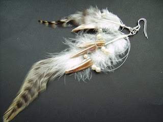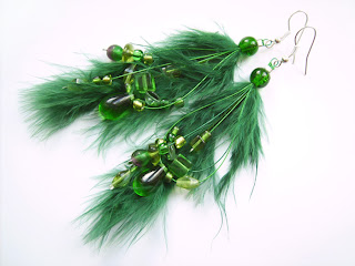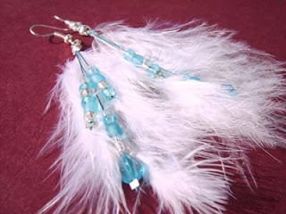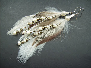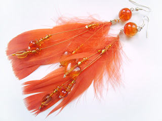 Materiały: piórka, koraliki szklane jablonex, srebro