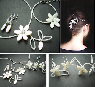 Komplecik ślubny: naszyjnik + bransoletka + kolczyki lub klipy + spinki kokówki