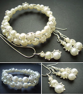 Materiały: perły szklane, elementy posrebrzane i srebrne