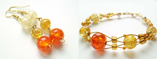 Materiały: koraliki szklane crackle, elementy w kolorze złota
