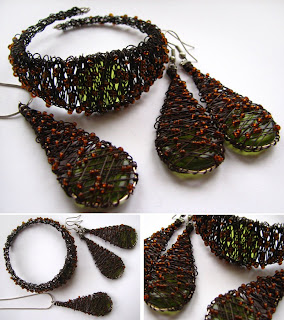 Materiały: koraliki szklane, drucik jubilerski, srebro
