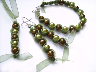 Materiały: perły szklane jablonex, tasiemka, srebro