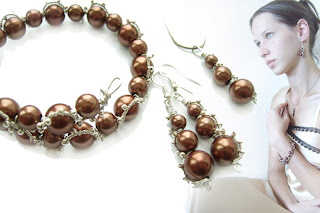 Materiały: perły szklane jablonex, drucik jubilerski, srebro