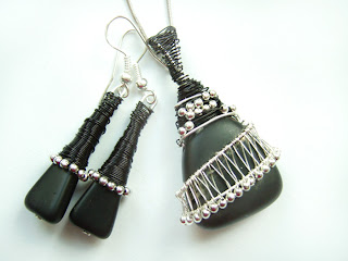 Materiały: koraliki szklane, drucik jubilerski, srebro