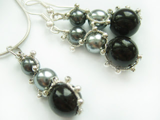 Materiały: perły szklane jablonex, drucik jubilerski, srebro