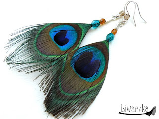 Materiały: pawie piórka, kryształy szklane preciosa, srebro