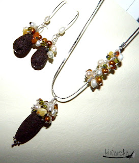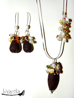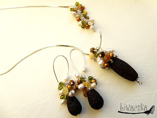 Materiały: lawa wulkaniczna, perły słodkowodne, bursztyn, kryształy swarovskiego i preciosa, srebro
