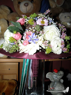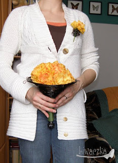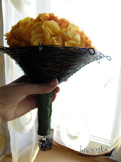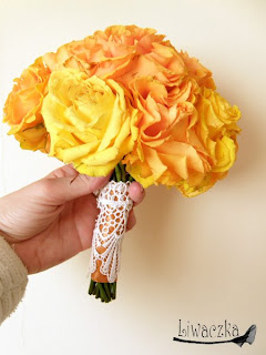 Wyplatając żelazną Marie uświadomiłam sobie że jeszcze nigdy nie robiłam torebki ślubnej i tak oto powstała kolejna propozycja bukietu ślubnego, tym razem misternie wyklejana z platków róży:)