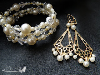 Materiały: perły szklane, kryształy szklane, elementy złocone