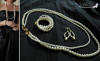 Dawno dawno temu naszło mnie coś na długi sznur pereł...ale troszeczkę inny niż te dostępne w każdym sklepie, w konsekwencji tego powstały 2 komplety biżuterii nie tylko ślubnej ale idealnej na każdą okazję. Ze względu na długość naszyjników można je nosić jako długie sznury pereł bądź też krótki naszyjnik przy szyi.