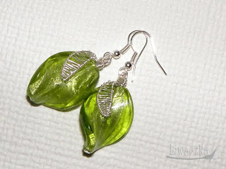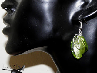 Zielone listki- kolczyki wykonane ze szkła weneckiego i srebra.