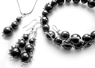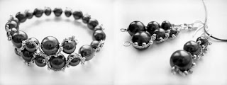 Materiały: perły szklane jablonex, drucik jubilerski, srebro
